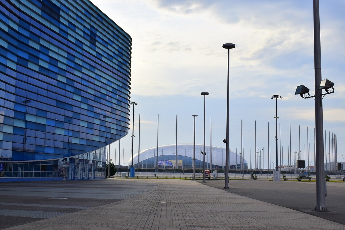 Это место стало 1-ым в списке увиденных достопримечательностей, потому что оно находилось ближе всего к нашему отелю, о котором я рассказывал тут. На территории Олимпийского парка находились главные спортивные сооружения, на которых в 2014 году проводились соревнования по хоккею с шайбой, конькобежному спорту, шорт-треку, фигурному катанию, кёрлингу, а также церемонии открытия и закрытия XXII зимних Олимпийских игр.