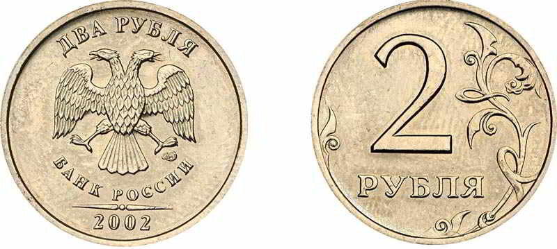 Монета 2 рубля 2002 года Монета 2 рубля 2002 года выпуска была произведена ограниченным тиражом и предназначалась для сувенирных годовых наборов. Это запакованные комплекты монет Банка России одного года выпуска. Монеты чеканили на Московском и Санкт-Петербургском монетных дворах. Актуальная цена набора ММД, выпущенного в трех вариантах, составляет порядка 30 000 рублей, а набора СПМД – 25 000 рублей. Стоимость В обращение этот денежный знак не поступал, но периодически на форумах, посвященных нумизматике, встречаются в продаже отдельные экземпляры. Согласно каталогам цена 2 рублей ММД – 10 000 - 15 000 руб., а СПМД – 8 000 - 11 000 руб. Шансов встретить такие монеты в обращении очень мало, но исключать такую возможность нельзя. ММД=10000 - 15000 СПМД=8000 - 11000 2 рубля 2002 года выпуска является очень привлекательной для инвесторов монетой, ее средняя стоимость продажи на аукционах за десять лет выросла с 200-400 рублей до 9-11 тыс