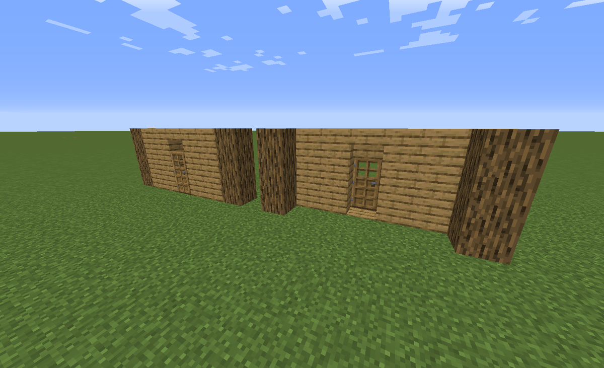 В качестве самой первой статьи я решил сделать гайд по строительству домов в minecraft (т.к. всегда строить коробки это не круто). Темой будет придание дому большего объема и как он влияет на здание . ⚫ постройка стен и окон эта часть здания является самой важной в нашей теме, т.к. именно она задает основной объем вашим постройкам. Для сравнения я взял самую важную стену, стену с дверью. В первом варианте объема нет в принципе, но в другом он присутствует Разницу заметить не сложно и я думаю это не сложно понять и можно всегда использовать, но у данного вида построек есть одна проблема. И думаю на этом кадре её можно заметить, это проблема внутреннего пространства Для решения этой проблемы и сравнения площади домов есть только одно решение - увеличение масштаба постройки. Но если нет ни желания, ни ресурсов можно выкопать подвал, тоже какое-никакое решение. Также в доме должны быть окна, как же без них? Для красивых окон я, как и многие игроки, использую ступеньки и стеклянные панели