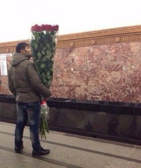 Заказывая большие букеты цветов - не забудь и про большую вазу или ведро под них. Иначе твоей любимой придется сделать так :