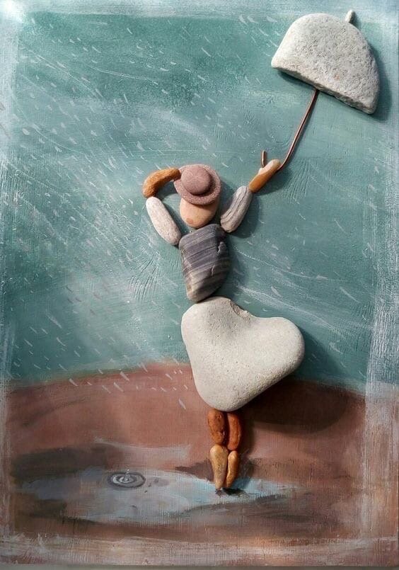 Художница из Венгрии Szilajka Erzsébet создает удивительно трогательные истории, используя обычные камни. В ее работах - самые простые истории и самые простые персонажи, хорошо знакомые каждому. Художница часами может просидеть на берегу реки, выбирая самые интересные камушки для своих работ, или же долго-долго ковыряться в придорожной пыли, пытаясь отыскать Те-самые... Автор собирает красивые камушки с детства, и признается, что порой ей очень трудно расстаться с каким-либо особо любимым ради того, чтобы он занял свое место на очередной картине. Но ради того, чтобы собралась цельная картина, она готова расставаться со своими сокровищами. Порой из-за того, что в наличии нет подходящей детали, работу над очередной картиной приходится приостанавливать на несколько недель, или даже месяцев - до тех пор, пока не отыщется нужный камень. Сложнее всего, как говорит сама художница, подбирать камушки нужной формы для головы. От работ Szilajka Erzsébet веет каким-то особым теплом и уютом. Возм