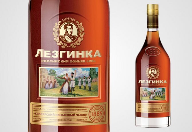 Самый узнаваемый коньяк бренда, производится с 1963 года. Букет представляет собой гармоничный баланс танинности и свежести, фруктовости и пряности. Во вкусе главная роль принадлежит сладковатым оттенкам спелого персика, заизюмленного винограда, абрикосового джема. Послевкусие теплое и долгое, с оттенками ванильного шоколада. «Лезгинка» — торговая марка, принадлежащая Кизлярскому коньячному заводу. Предприятие с годовым объемом выручки более 2,5 млрд рублей входит в число самых крупных и высокорентабельных производителей крепких алкогольных напитков в России. Компания обладает статусом официального поставщика Московского Кремля: выпускаемый ККЗ коньяк «Россия» является протокольным напитком администрации президента РФ. ГУП «Кизлярский ко