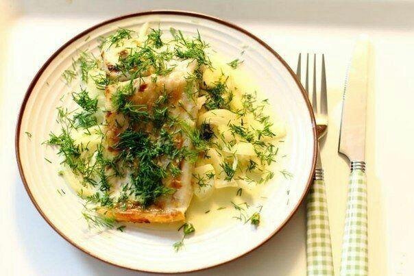 Ингредиенты: Приготовление: 1.Время приготовления - 60 минут Количество порций - 4 2.Рыбу порежьте на порционные куски. Посолите и сбрызните лимонным соком. Поставьте в холодильник минимум на 30 минут (до 24 часов). 3.Разогрейте духовку до 190ᵒС. Дно жароупорной посуды щедро смажьте сливочным маслом. Выложите лук, посолите и равномерно распределите по всей поверхности. 4.Сверху положите рыбу, кожей вниз. 5.Поставьте рыбу в духовку и пеките 20-30 минут до мягкости лука. Рыба должна полностью побелеть. Сметану смешайте с мукой, солью и перцем. Хорошо взболтайте, чтобы не было комков, и переложить к рыбе. Пеките еще 10-12 минут, пока блюдо хорошо не подрумянится. 6.Выньте блюдо из духовки, посыпьте щедро укропом и подавайте. Это блюдо хорошо сочетается с отварной гречкой или с картофелем. Приятного аппетита. #как приготовить рыбу