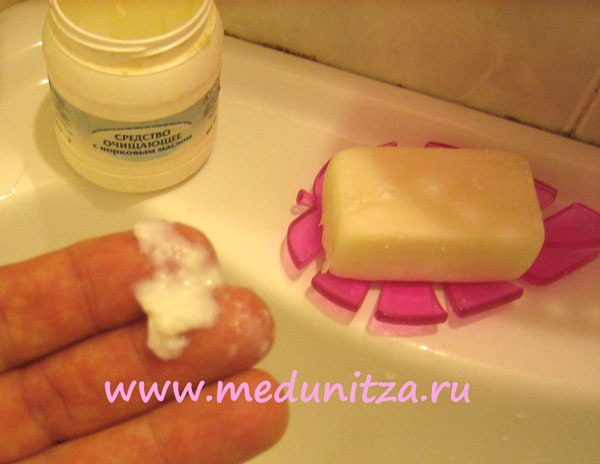 Это детское мыло, масло норки, камфара, нашатырь и перекись водорода. Звучит грозно, но штука деликатная и ! эффективная.