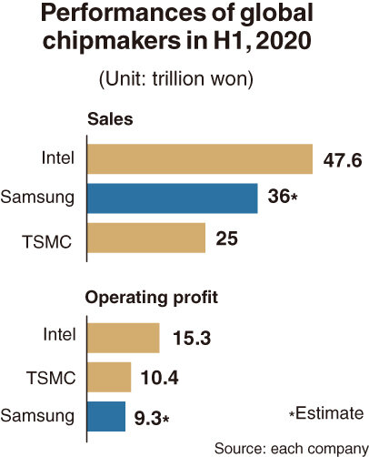 В то время как американская корпорация Intel удерживает лидирующие позиции на мировом рынке полупроводников по объему продаж и операционной прибыли в первой половине 2020 года, южнокорейский производитель микросхем Samsung Electronics, похоже, отстает от своего тайваньского конкурента TSMC.