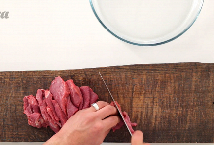 Азу по-татарски. Одно из немногих блюд, удостоившихся в советской продуктовой традиции продажи с именной нарезкой. И до сих пор в кулинариях и супермаркетах можно найти говядину, которую режут соломкой и продают как азу. Насчет самого блюда до сих пор идут споры, как и с чем готовить: использовать говядину или баранину, топленое или обычное масло, тушить в казане или сотейнике с толстым дном. Редакций этого блюда может быть много, но основа его всегда неизменна — это нарезанное соломкой мясо, картофель и томатный соус. ЭНЕРГЕТИЧЕСКАЯ ЦЕННОСТЬ НА ПОРЦИЮ ИНГРЕДИЕНТЫ___________________________________на 4 ПОРЦИИ Говядина____________________________________________500 г Лук репчатый_______________________________________5 головок Соленые огурцы___________________________________3 штуки Томатная паста____________________________________2 столовые ложки Картофель_________________________________________1 кг Мясной бульон____________________________________1 стакан Чеснок___________
