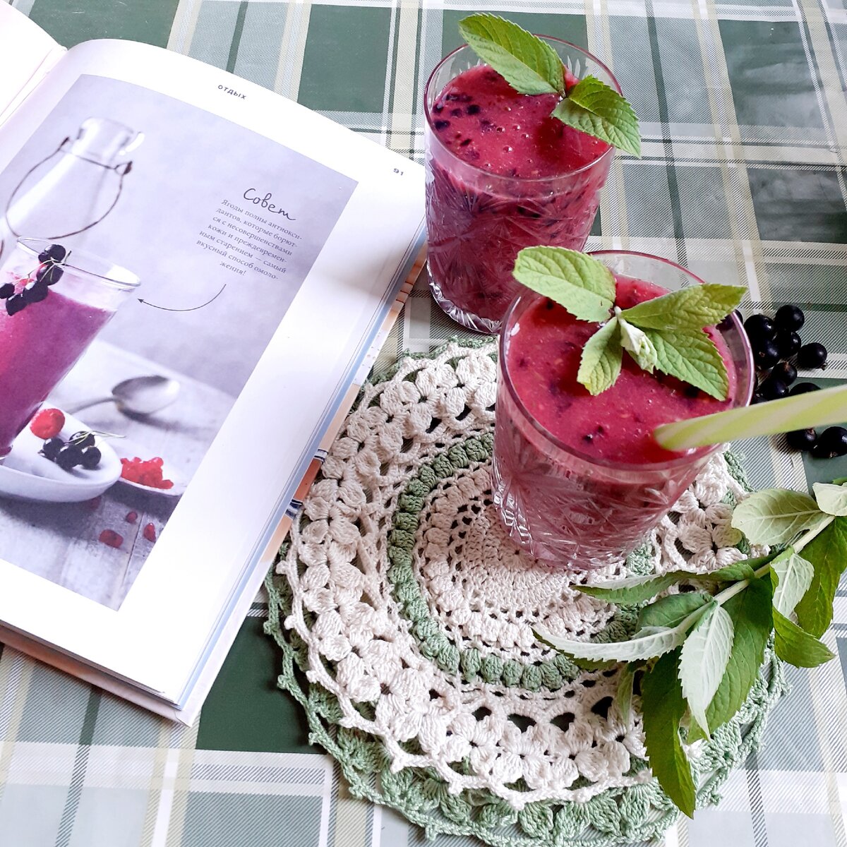 Не очень люблю кулинарные книги, особенно зарубежных авторов. Всегда не хватает какого-нибудь ингредиента. В данном же случае "карты сошлись". Как раз сезон смородины, мята выросла...