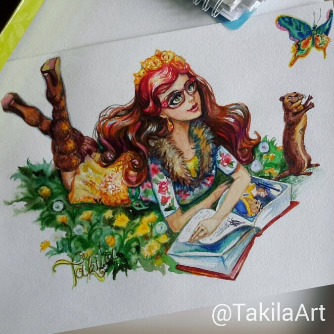 Художница Takila Art создает очень интересные работы с персонажами Эвер Афтер Хай (и не только, но в этой новости мы остановимся именно на них). Многие из этих рисунков нарисованы карандашами и (или) акварельными красками. И это живое (не компьютерное) исполнение делает их особенными. Страничка автора ВКонтакте: Takila Art