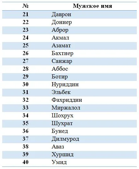 В прошлой части были даны значения 20-и самых популярных имён, теперь "пройдёмся" по следующим двадцати: