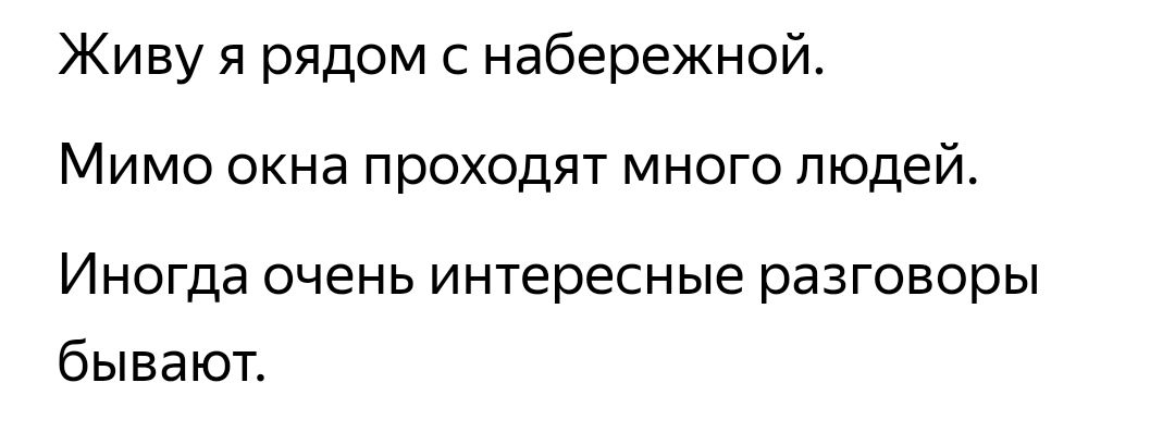 Смотрю, по улице идет молодая, ухоженная женщина и рассказывает по телефону: - Мне сегодня приснилось, что я один раз просрочила кредит и теперь мне зарплаты не хватает, чтобы даже погасить долг. А недавно снилось что налоговая приехала, но никто не предупредил. Ага. А в детстве знаешь что? Снилось что на меня оса напала, не кусает, но летает за мной. А ещё снилось, что папа обещал что поедем в субботу в зоопарк, а мы поехали в воскресенье. Вот бы мне сейчас приснилось, что мы поехали в зоопарк в воскресенье. Это вообще не кошмары были! Вот сейчас я во сне за кредит не заплатила! Вот где настоящие кошмары. Я сижу у окна с чаем, а на скамеечке две девушки разговаривают про работу. Одна из них очень озлобленно рассказывает: - На работе у коллеги звонит телефон, а коллега отошёл. Я беру трубку, но там уже гудки. На этот телефон вообще не звонят, так как у всех мобильные. Подходит коллега, я говорю: "Тебе звонили". Коллега не верит, и спрашивает: "Кто звонил, Пушкин?" Я смеюсь и говорю: