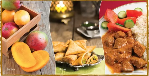 Аюрведа, рекомендует принимать пищу в соответствии с тем состоянием, в котором находится человек к моменту наступления чувства голода. Часто преобладающая гуна затмевает истинные потребности организма и не дает человеку почувствовать, чего же на самом деле не хватает его телу. Ленивый будет тянуться к сладкому, вспыльчивый и обидчивый человек предпочтет острые и кислые блюда, жадные и жестокие люди очень любят мясо.Для того, чтобы тело понимало свои естественные потребности в определенных питательных веществах, нужно его очистить и стараться не заглушать просьбы организма в нужных ему продуктах. Принимать пищу следует только в состоянии голода, находясь в спокойном настроении, не стоит есть, засыпая на ходу, или, наоборот, когда вы слишком возбуждены или нервничаете.Перед каждым приемом пищи следует немного помолчать, настроиться, ощутить запах блюда, которое вы собираетесь съесть. Не нужно за обедом читать, смотреть телевизор, разговаривать. Насыщение должно быть осознанным. Саттвичное питание предполагает употребление в пищу только тех блюд, которые приготовлены непосредственно перед трапезой.