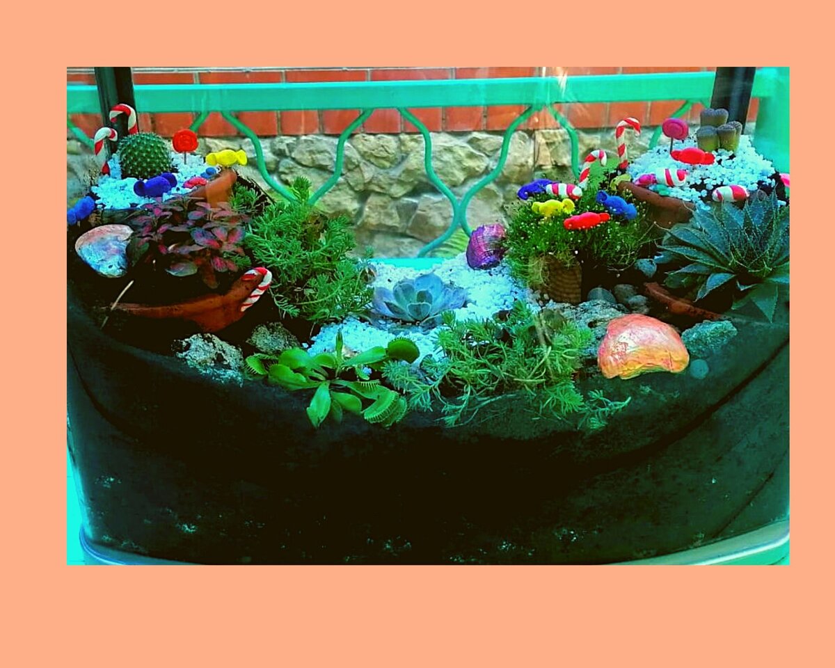 Наверняка, у многих из нас есть где-нибудь заброшенный старый аквариум. Вот и у меня, пылился у мамы, довольно большой аквариум, да еще с подсветкой. Пылился он там, пока моя дочка не увидела где-то на просторах интернета прекрасные и манящие миры флорариумов — композиции цветов растущих под стеклянным куполом. -Мам, ну давай сделаем такой волшебный, сказочный мир с разными цветами и дорожками. А еще чтобы там были сказочные драконы и единороги или волшебное королевство конфет. - Фонтанировала идеями моя доченька. Вот как мы делали наш сказочный фролариум 1. Попросили папу удалить из аквариума (выпил с помощью ножовки) все части касающиеся подачи кислорода в аквариум. Оставили только электрическую подсветку. 2.Затем засыпали на дно аквариума керамзит — для дренажа. 3. Дальше нужно было сформировать какой-то рельеф. Мы решили сделать два холма — по одному на каждой стороне аквариума. Я заполнила почвогрунтом аквариум, сформировала два холма. Для того чтобы укрепить эт