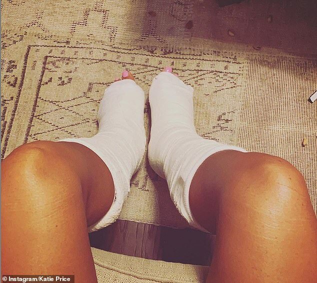 42-летняя гламурная модель, которая прекращает свой отпуск, чтобы вернуться домой для дальнейшего лечения, поделилась фотографией своих забинтованных ног в Instagram в четверг вечером, подтвердив, что ей нужно будет ставит штифты в ноги и не сможет ходить в течение 3-6 месяцев. Кэти, испытывающая "мучительную боль", провела ночь в больнице в среду после прыжка со стены в тематическом парке "Земля легенд" в Турции, и сломала обе пятки в процессе. Представитель Кэти сказал: "я могу подтвердить, что Кэти получила травму. Это было поддержано ее собственными действиями, когда она посещала семейный парк развлечений с детьми, Карлом и друзьями. - Ожидается, что Кэти прервет свой отпуск и улетит в Великобританию для дальнейшего лечения. Кэти Прайс отдыхает вместе со своим бойфрендом в Турции. Пара вылетела на отдых в начале этой недели с двумя из пяти детей Кэти. До травмы модель активно демонстрировала свое хирургически улучшенное тело.
