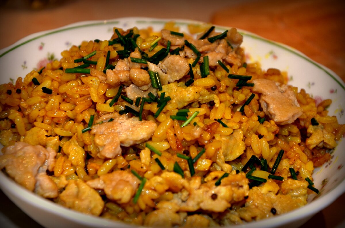 Это блюдо мы впервые попробовали в Индии. В этой стране мясо едят редко, кто-то по этическим соображениям, кто-то по соображениям экономии. Да и в условиях невыносимой жары хочется пищи полегче. Мы часто заказывали жареный рис в индийских шеках, а теперь регулярно готовим его дома по выходным на завтрак. Почему по выходным? Потому что в рецепте присутствует чеснок.