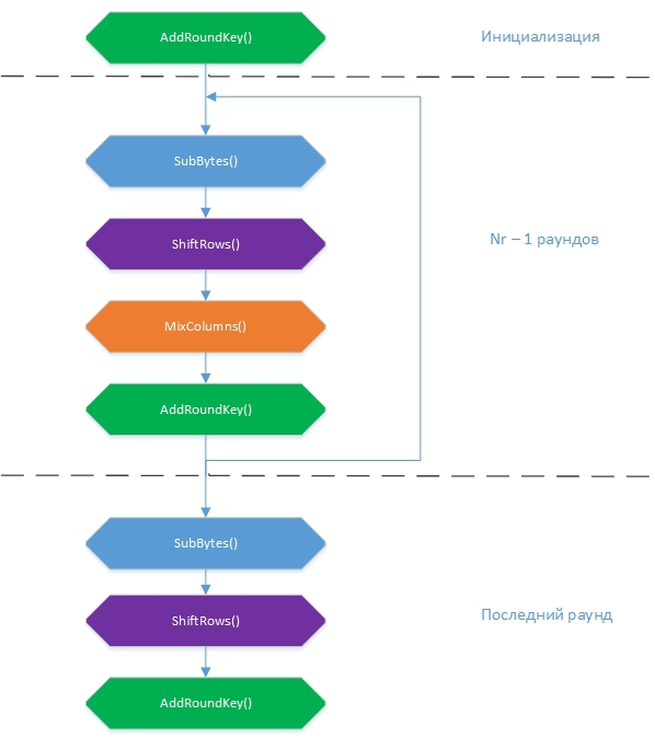 Advanced Encryption Standard, также известный как Rijndael — симметричный алгоритм блочного шифрования, принятый в качестве стандарта шифрования правительством США по результатам конкурса AES. Этот алгоритм хорошо проанализирован и сейчас широко используется. Он был разработан бельгийскими криптографами Винсентом Райменом и Джоано Дэйменом еще в 1998 году. Национальный институт стандартов и технологий (NIST) открыл для криптографов конкурс на разработку алгоритма замены популярного до сих пор стандарта (DES) в связи с ненадлежащим уровнем его защиты, с повышением уровня вычислительной мощности выросла уязвимость от атак брутфорсом из-за ограниченного выбора ключей шифрования. Брутфорс - это метод взлома,путем подбора. Требования NIST к конкурсу были следующими: Rijndael стал победителем и в 2000 году было предложено стать новым стандартом. В 2002 году Rijndael(AES) был утвержден, как стандарт. AES для шифрования 128-, 192- и 256-битные ключи. АНБ использует его для хранения до