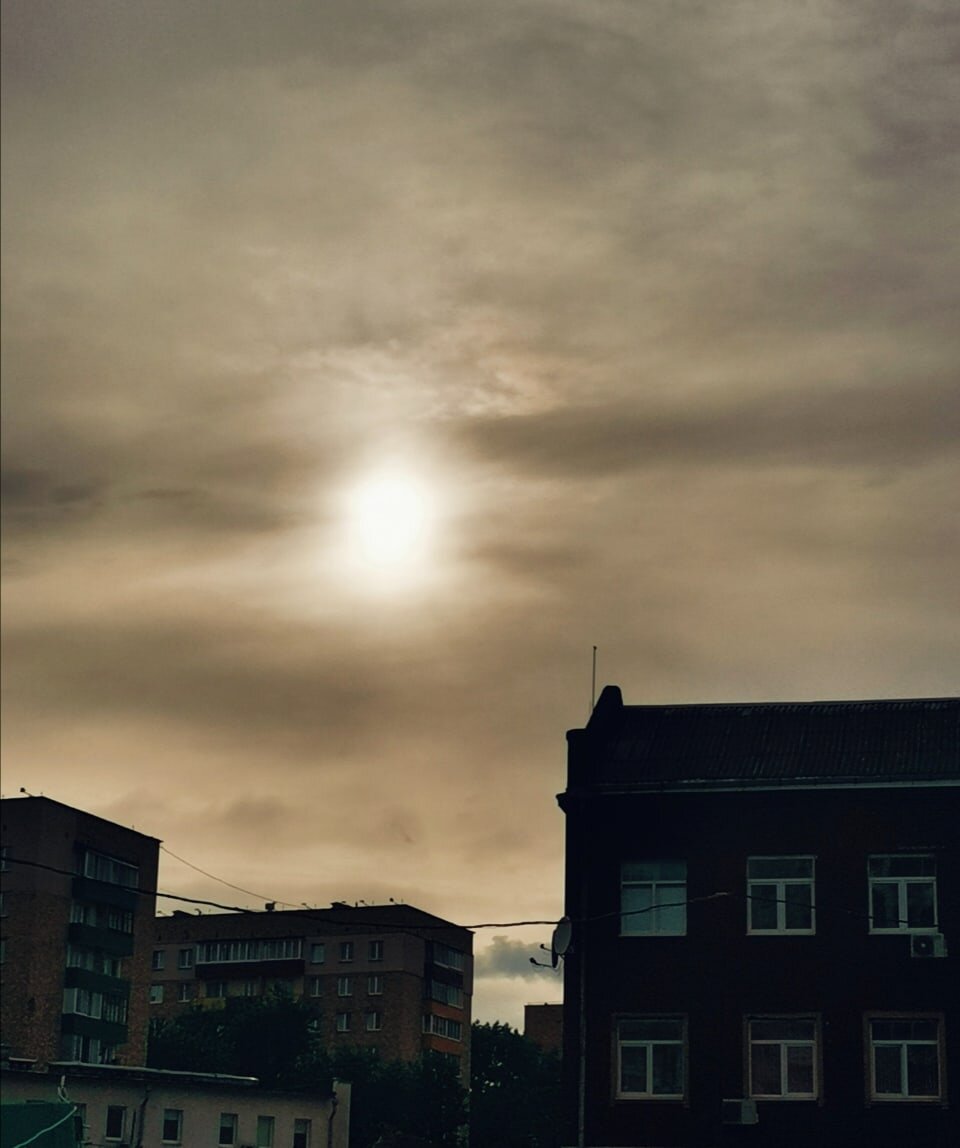 Тёплое небо и спрятавшееся солнце. А вон на той крыше справа точно поселился Карлсон. Зайти бы к нему на чай с плюшками. Авось подарит мне кусочек своих добрых историй.