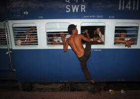 Когда поезд тронулся и начал отъезжать, на перроне осталась большая куча смуглых товарищей. Не смогли в поезд сесть без билета.