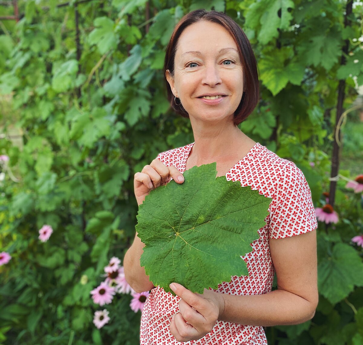 Мама обрезала молодые поросли винограда, на которых росли крупные листья. В какой-то момент, взглянув на бесцельно лежащие молодые побеги, ей стало грустно, что такое «добро» пропадает. Говорит, что все должно пользу приносить.