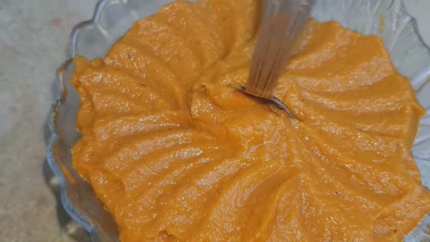 - Измельчить готовую икру погружным блендером или миксером.