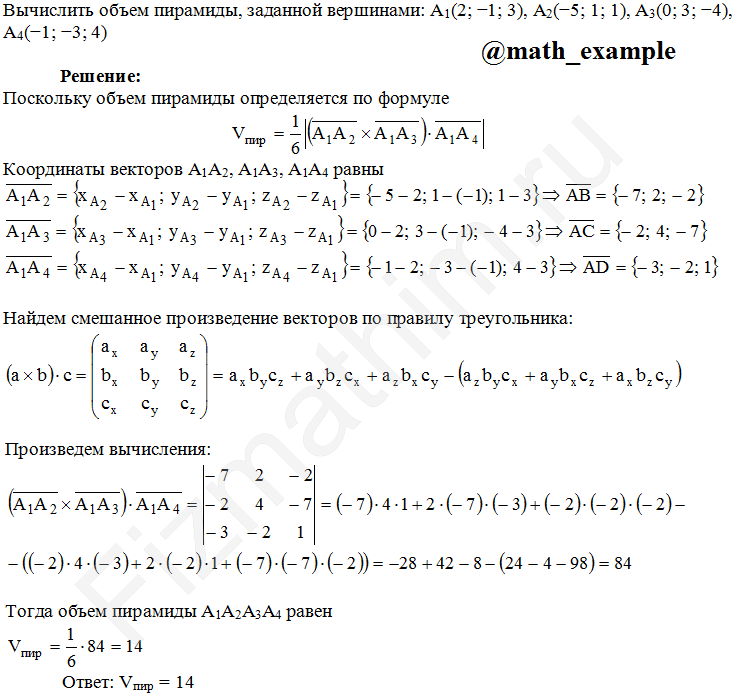 Вычисление объема пирамиды пример 1.