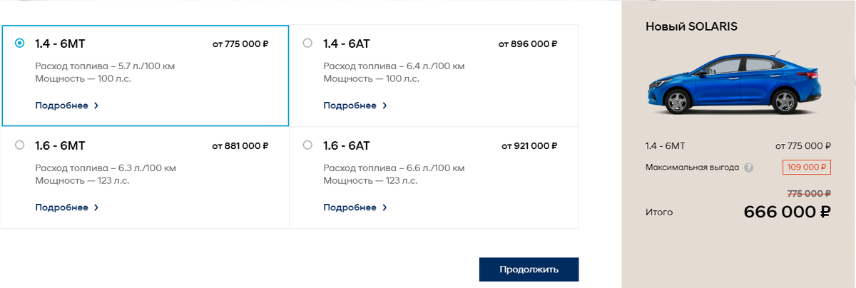 Самая дешевая версия Solaris, без учета всех скидок выйдет 775000 рублей. Это версия объемом 1.4 литра, механической коробкой передач. Как говорится, самая "деревянная" версия. В этой комплектации у машины отсутствуют: