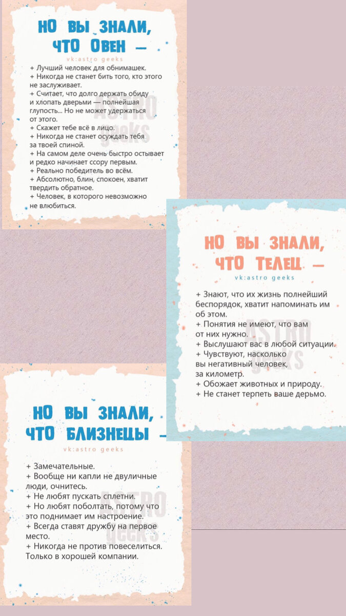 Овен, Телец, Близнецы.