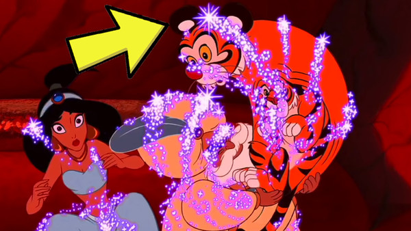 В конце фильма проклятие Джафара разрушается, и тигр Раджа возвращается к своей зрелой, величественной форме. В одном кадре, когда происходит преобразование, у Раджи, похоже, две головы, одна из которых имеет уши Микки Мауса.