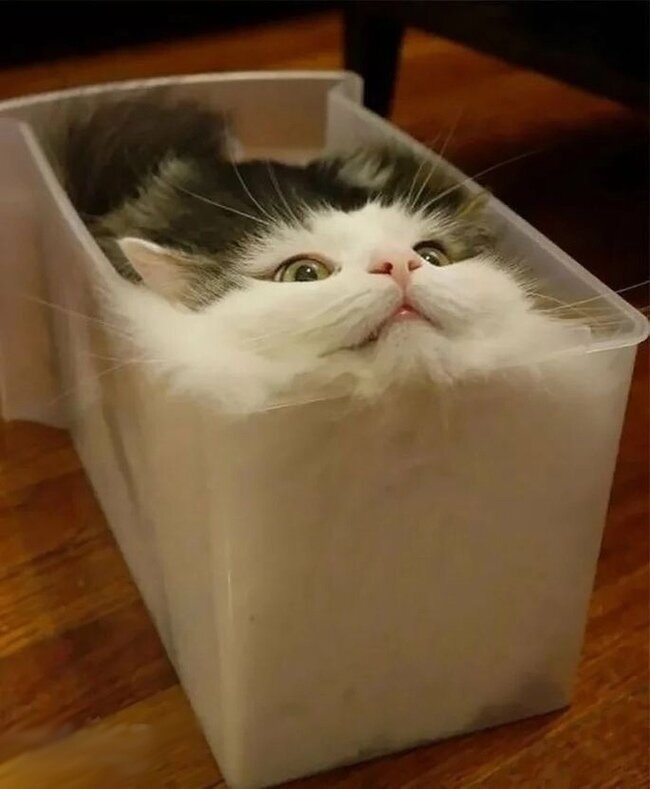 С чего мы это взяли? Ну, во-первых, давайте определим, что такое жидкость и какими качествами она обладает. Согласно Википедии, «жидкость принимает форму сосуда» и поддерживает «почти фиксированный объем». Что ж, кошки любят делать то же самое! Если у вас есть кот или кошка, вы наверняка не раз наблюдали этот феномен. Кошки не упустят возможности залезть в любую банку, коробку, горшок, какими маленькими они бы ни были! Все еще не верите, что кошки принимают любую форму сосуда? Смотрите.