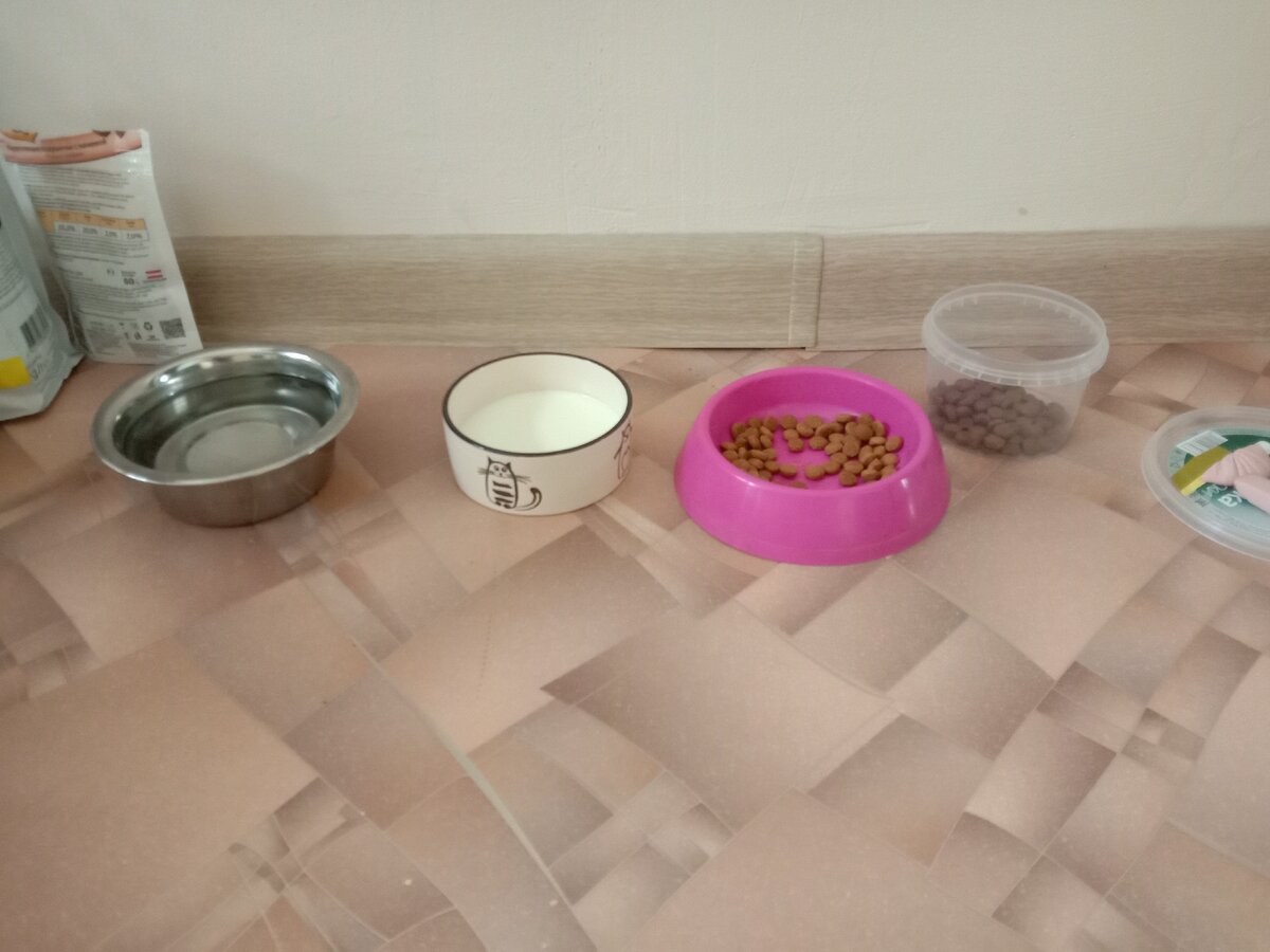 Не знаю, как у других, но у нашей Буси в ее обеденном "углу" находится как минимум 5 разных мисок-тарелок.