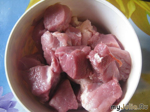 Чтобы мясо легче перемалывалось, нужно взять немного подмороженное мясо и нарезать его небольшими кусочками. Если мясо свежее, то, нарезав, подморозить его.