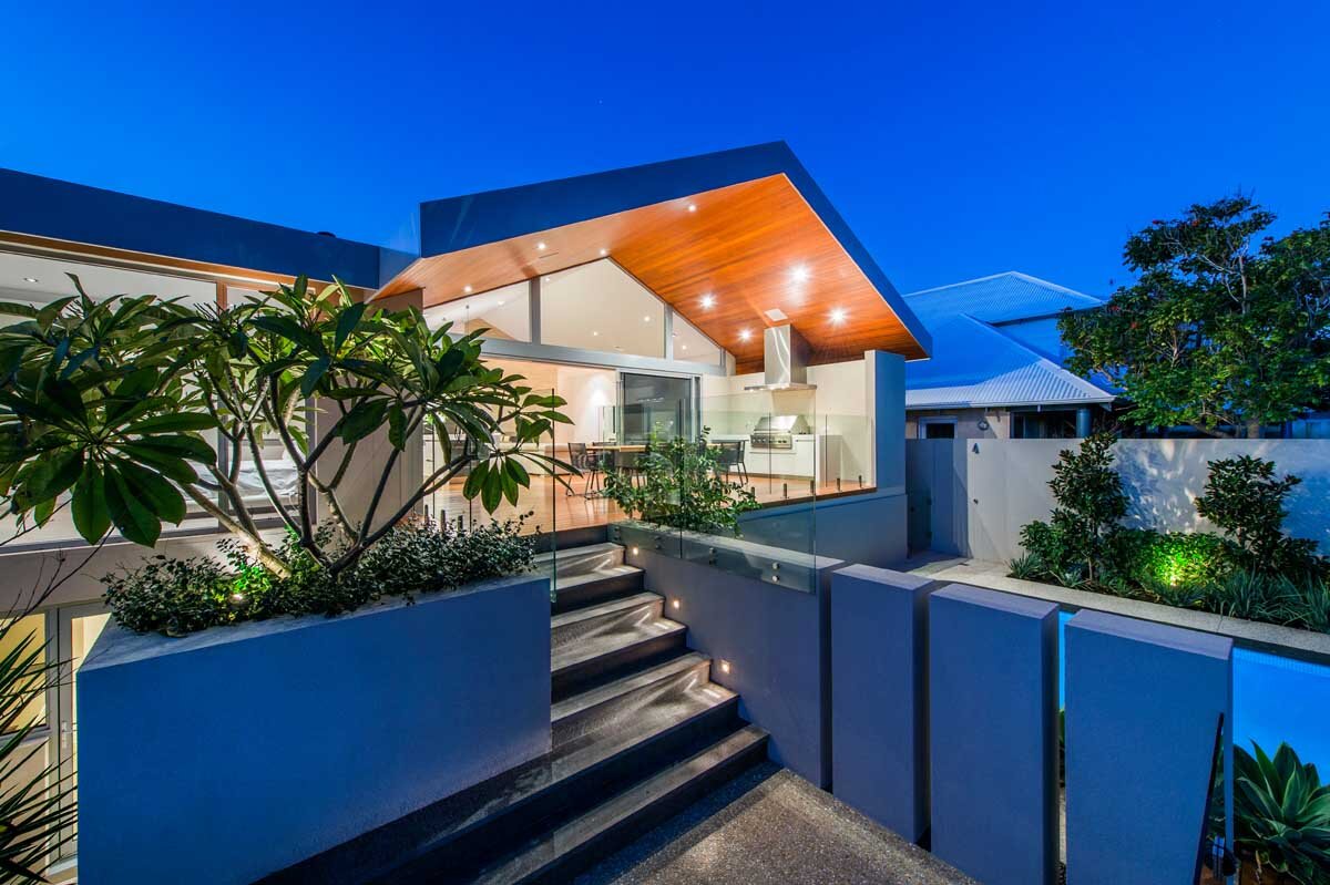 В целом дом сохранил свои габариты, слегка раздвинувшись вперёд, к улице и назад, в небольшой двор, за счёт щедрых свесов, закрывающих террасы.