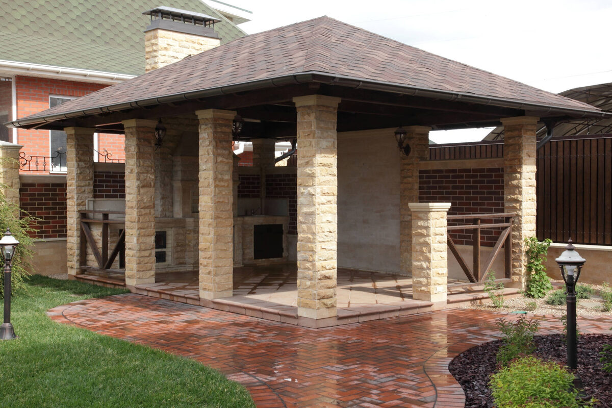 Любой ухоженный сад состоит не только из растений, но и из различных сооружений и архитектурных форм. Не стоит думать, что эти сооружения носят исключительно декоративный характер, многие из них выполняют и практические задачи. И одним из наиболее распространенных функциональных элементов является беседка. Традиционным материалом для беседки считается дерево, однако не всегда древесина сочетается с остальными элементами сада. В этом случае стоит обратить внимание на беседки из других материалов. Беседки, выложенные из кирпича или камня, не только выглядят монументально, но и могут использоваться практически наравне с небольшим садовым домиком. В таких беседках можно уединяться от городской суеты или, наоборот, праздновать какое-либо событие в компании друзей. Они обычно с 3-х сторон имеют стены, а с четвертой - проем для обзора окрестностей. Часто в таких беседках выкладывают камин или барбекю для приготовления пищи. Это позволяет совместить все приятные моменты отдыха в единое цело