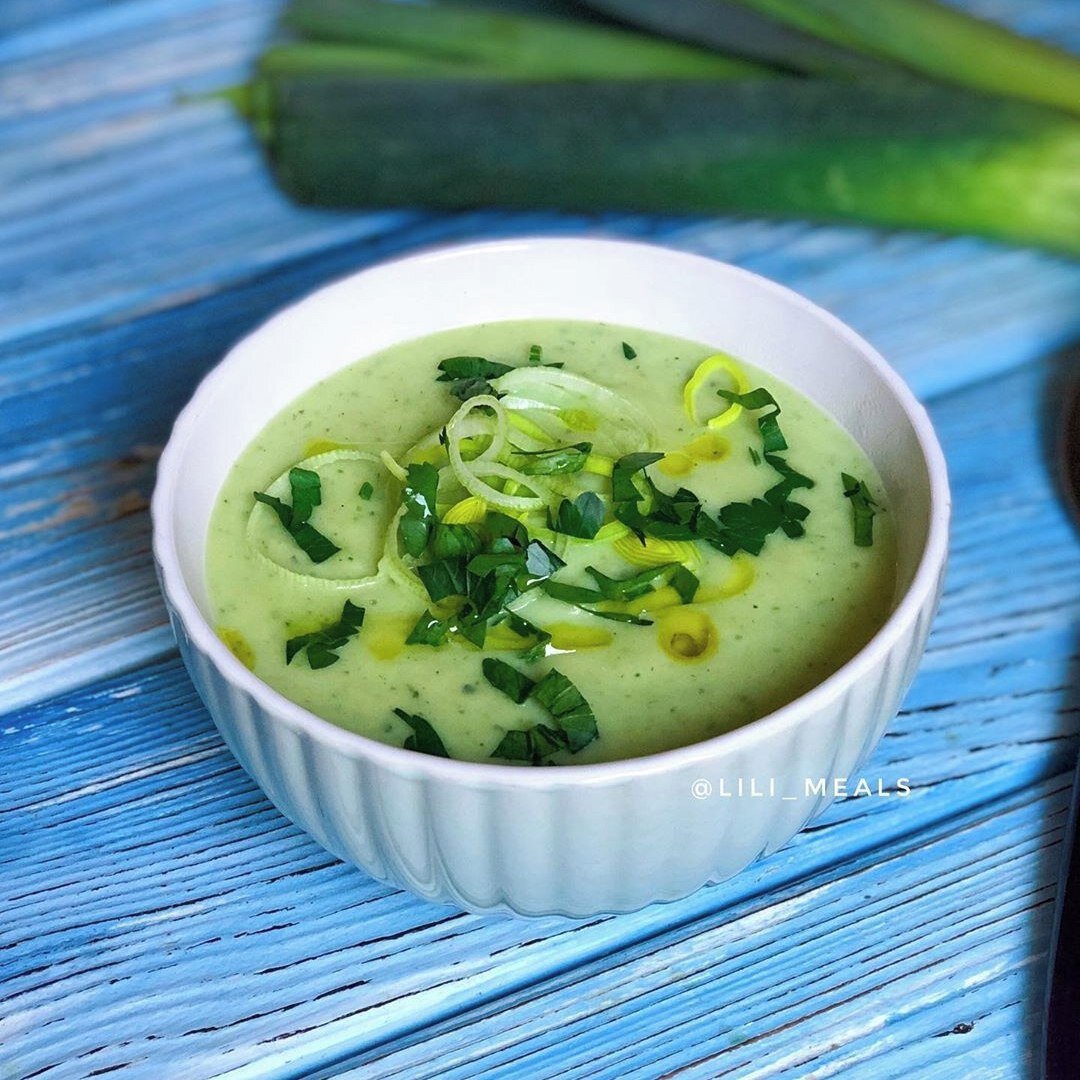 Ингредиенты: ✔️лук порей 2 стебля ✔️картофель 800 г ✔️чеснок 2 зубчика ✔️сливки 20% 300 мл ✔️петрушка 50 г ✔️сливочное масло 2 ст.л. ✔️свежемолотый перец, соль 1️⃣Нарезать белую часть лука порея средними кольцами, мелко порубить чеснок. Растопить сливочное масло в глубокой сковороде с толстым дном и обжарить на слабом огне, постоянно помешивая, ~5 минут. 2️⃣Добавить кипячённую воду ~1 л, очищенный картофель. Готовить до мягкости картофеля. 3️⃣Нарезать ещё см 10 от лука порея (зелёную часть), мелко порубить петрушку и добавить в суп, готовить ещё 5 минут. Добавить сливки, соль, перец и взбить суп блендером в пюре. Подавать, украсив кольцами лука порея и петрушкой.