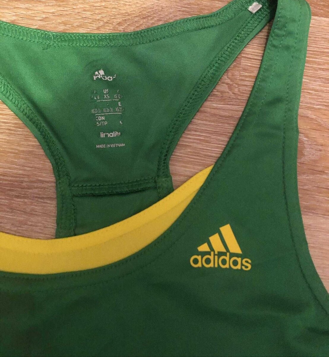 Спортивная футболка размер S-M, adidas 350 рублей, зелёная майка adidas размер XS 200 рублей. Мне малы, купила для младшей сестры, в "Планете секонд-хенд ", она качеством довольна, с удовольствием надевает в спортзал.