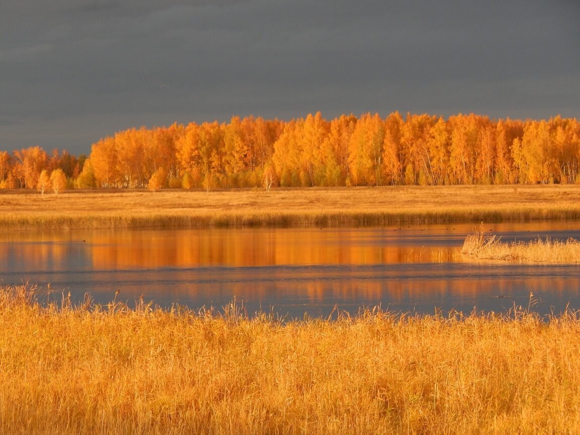 Такая вот бывает осень золотая.Без фотошопа. Просто щелчок фотоаппарата.Этот снимок я сделал у озера Старинка,близ деревни Кошелево Макушинского района Курганской области в начале октября 2016 года.Правда красиво?