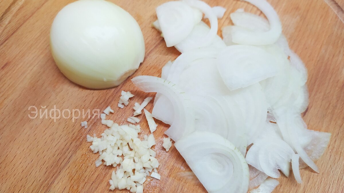 Обжариваю в нем лук и чеснок до полной готовности.