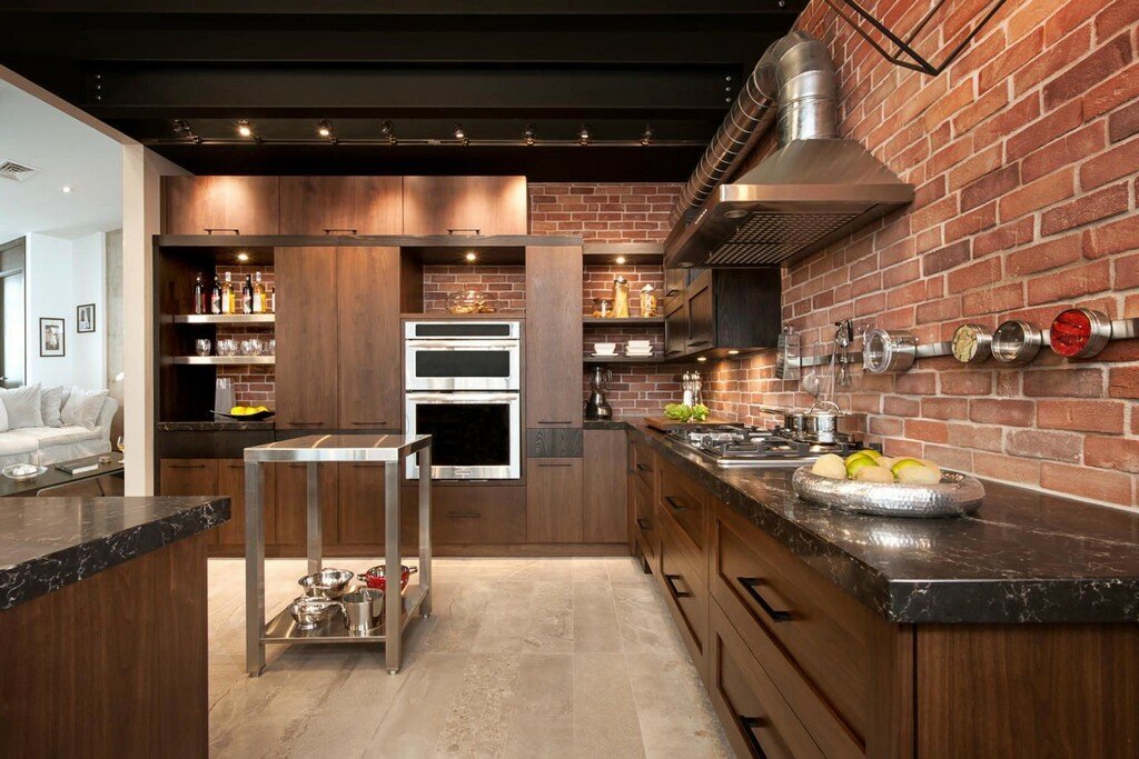 Стиль лофт довольно гибкий, и в этом его главный плюс. Выглядеть он может по-разному – не только брутальным, минималистичным, но вполне изящным. Всё зависит от пожеланий хозяев дома. И размеры варьируются — от П-образной кухни-острова до компактных кухонных блоков (образцы кухонь https://www.instagram.com/kuhni.live/).