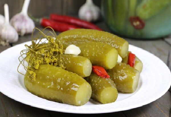 Рецепт содержит острый перец, что делает огурцы идеально закуской, однако если вы хотите готовить из них салаты, рассольник или солянку, стручок перца чили можно опустить.