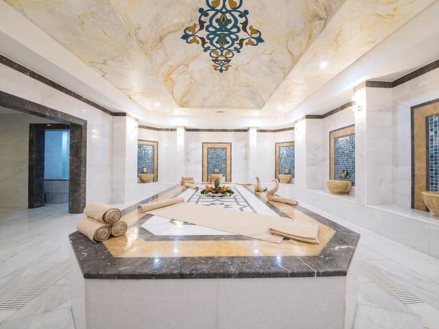 🔝 Просторные номера со вкусом оформлены в бирюзовых и коричневых тонах, большой открытый бассейн 🏊 с аквапарком 🎢, отличный сервис 🏆, развлекательные программы 💃🎷🎤 порадует каждого туриста 😍 ✅ Для приятного семейного отдыха 👨👩👧 🌴 Территория: