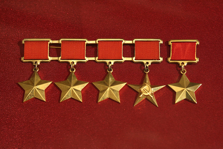 Звание «Герой Советского Союза» присваивалось всегда два раза в истории СССР. Одному военноначальнику во время войны, а другому — уже намного позже и не понятно за какие заслуги. Если дважды звание Героя Советского союза было присвоено 154 человеку, трижды – трем, то четыре золотые медали получили только два человека. Стоит отметить, что звание герой Советского Союза и золотая медаль давались только за геройские подвиги в отношении своей страны. Четырежды Героями Советского Союза стали Георгий Жуков и Леонид Брежнев. Первую свою золотую звезду Жуков получил в 1939 года за операцию у реки Халкин-Гол, где была разгромлена японская армия. Вторая награда (Героя СССР) нашла своего героя только ближе к концу войны в 1944 году. Он была ему присвоена за образцовые и успешные боевые операции. Третью звезду Героя Советского союза Жуков получил в 1945 году за успешное выполнение боевых заданий. А вот четвертой золотой звездой Героя Советского Союза маршал Жуков получил в честь своего 60-летия.
