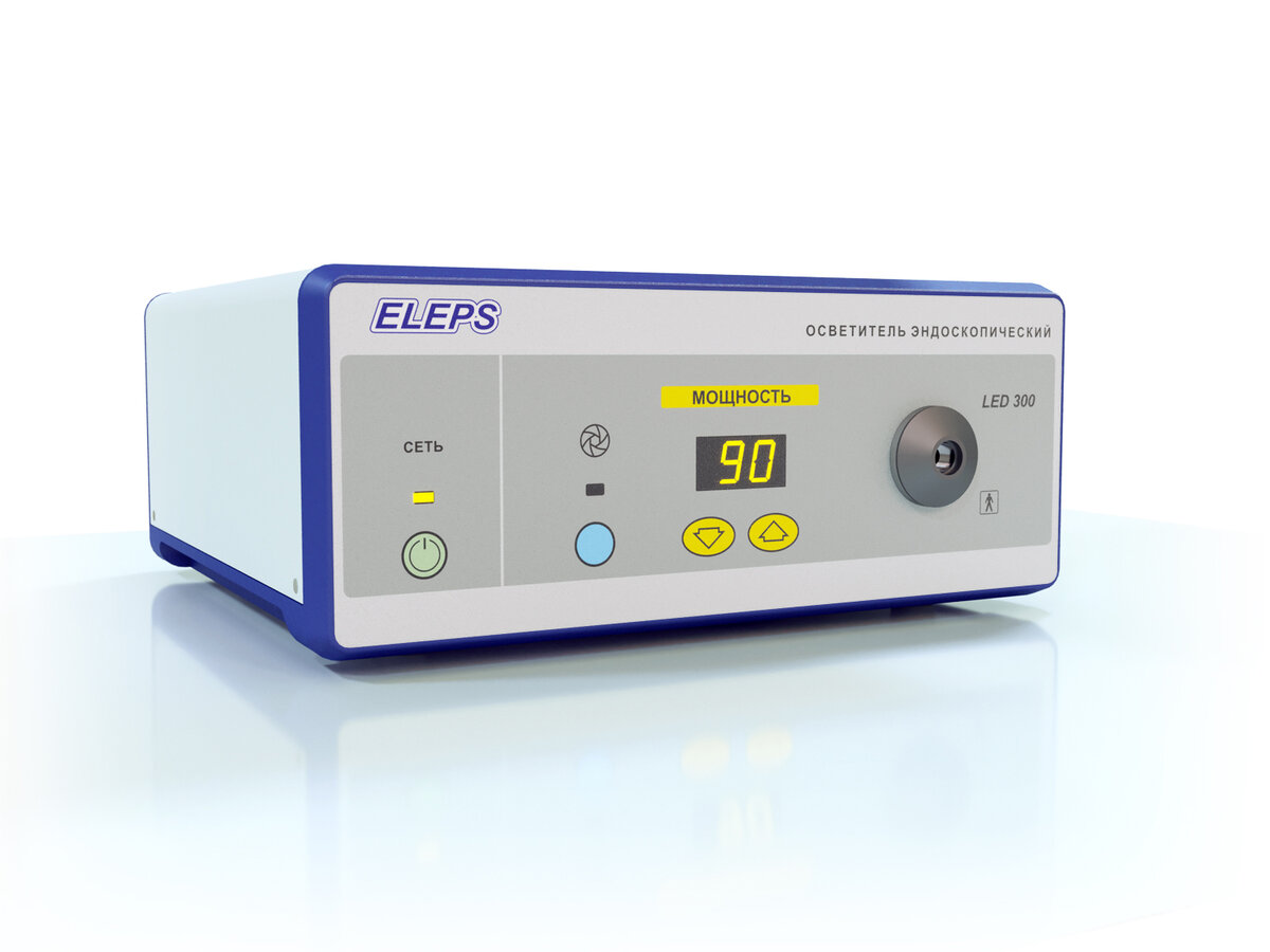 Осветитель служит для формирования светового пучка и концентрации его на торце световодного кабеля. Источник света в осветителе — лампа. Наиболее проста и доступна галогеновая лампа, однако она имеет ограниченный срок службы (самые долговечные не более 100-150 часов). Более перспективный осветитель — прибор с ксеноновой лампой, которая по сравнению с галогеновой имеет спектр излучения, приближающийся к естественному солнечному. Ее ресурс выше — не менее 500 часов. Осветитель "ЭлеПС" на ксеноновой лампе позволяет получать большую освещенность объектов при меньших затратах электроэнергии, так как коэффициент полезного действия (КПД) у него выше. Другим основным элементом осветителя является проекционная оптическая система, собирающая свет от лампы на торец световодного кабеля, диаметр которого обычно не превышает 5 мм, с заданной расходимостью этого пучка таким образом, чтобы минимизировать потери света в световодном кабеле. Дело в том, что световодный кабель пропускает л
