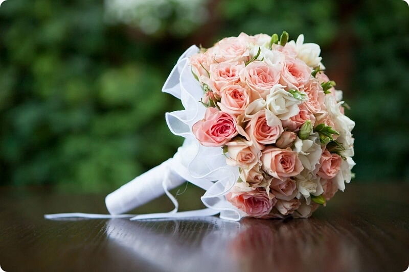 Даже не слишком дорогостоящее свадебное торжество украшается красивыми и яркими живыми цветами. Тем более неизменным спутником девушки на столь значимом празднике является красивый букет. Нужно отметить, что сегодня выбор девушки в оформлении наилучшей цветочной композиции не ограничивается белыми или светло-розовыми цветами, так как в моду вошли роскошные букеты с оригинальным оформлением. Необычная цветочная композиция должна гармонировать с пастельными тонами наряда. В том случае, если девушка очень любит оригинальные оформления и эксперименты, то можно выбрать изящные букеты с яркими цветами. На свадьбе цветы должны быть только живыми, так как искусственное оформление имеет свойство очень резко выделяться на фоне других украшений. Не рекомендуется использовать букет, имеющий слишком насыщенный аромат, иначе есть риск, что у главной героини свадьбы начнет очень сильно болеть голова и испортится настроение. Лучше всего подобрать давно знакомые растения, которые привлекают легким запа