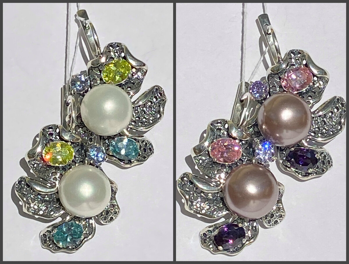 Жемчуг - прекрасная вставка для серебряных украшений, которая используется испокон веков и до наших дней при изготовлении изделий из серебра. Разнообразие цветов, размеров, чистоты жемчуга дает возможность мастерам создавать прекрасные изделия из серебра с жемчугом для различного применения в сфере моды.