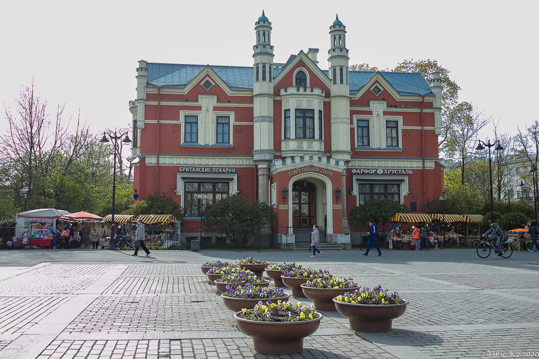 Сейчас здесь торговый дом с несколькими магазинами и кафе «Британские пекарни». Все было бы хорошо, если бы вокруг не расположился рынок. Его палатки и вывески точно не украшают красивое здание. А недавно еще Шаверму открыли :(