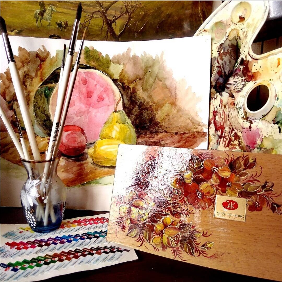 2 Акварель художественная от завода Невская Палитра 24 цвета. У нее очень маленький расход, хватит на 3-4 года.