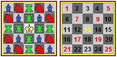 Вот из этого квадрата и возникают шахматные фигуры. Номера полей и числа на полях совпадают.