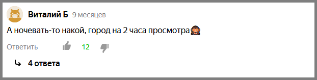 Ох, друзья, накипело! В каждой статье про посещение небольшого города кто-нибудь да спросит: Это к статье про Дмитров. А вот из последнего, про Серпухов: И, смотрите, люди лайками соглашаются с высказыванием! В том, что в городе есть гораздо больше всего интересного, чем пара церквей, таких людей убедить невозможно! Я-то знаю, я пытался! В Серпухове вообще одно из крупнейших в России собраний живописи, рядом заповедник с зубрами, монастыри, усадьбы, водопад. Сможете все это осмотреть за "5-6 часов"? Кстати, именно эти люди и говорят, что "в Пизе кроме башни смотреть нечего" и "в Берлине скучно: Стена, Рейхстаг И ВСЁ" Если развивать эту тему дальше, то я вообще считаю, что не существует городов, для которых достаточно пары часов. Конечно, невозможно останавливаться в каждом маленьком городке на ночь - времени для этого достаточно только у безработных людей)) Но категорически заявлять, что "здесь нечего делать" - некорректно. Но достопримечательности - это не единственная и не главная п