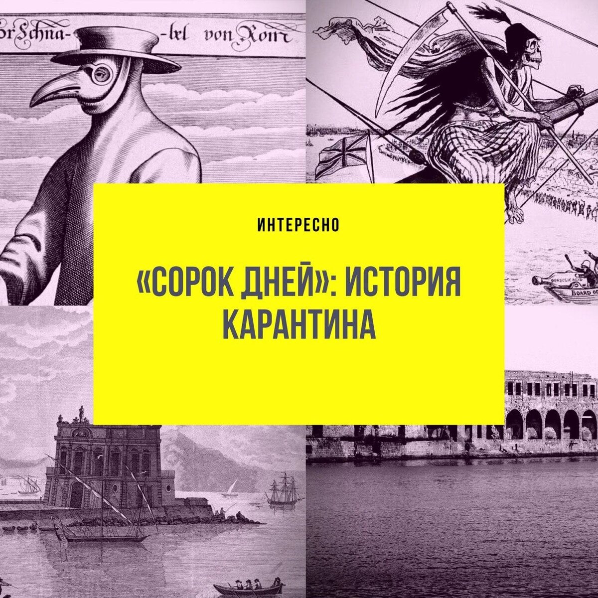 Свирепствовавшая в 14 веке в Европе чума заставила принять ограничительные меры по отношению к судам, прибывающим из азиатских и африканских портов. Хотя первые законы непременной выдержки в изоляции прибывших в город людей и их товаров были приняты в городе Реджо-нель-Эмилия, известны подобные меры стали благодаря Венеции. Что такого происходило в Венеции? Венеция в 14 веке была, пожалуй, крупнейшим торговым портом Европы, туда приплывали корабли с многих иных краев. К тому моменту уже было довольно реальное представление, какую опасность могут принести корабли с чумой. Поэтому власти города ввели закон, согласно которому все корабли, желающие прибыть в город, должны поначалу бросить на 40 дней якорь у острова который назвали Лазаретто, что в 4 километрах от самой Венеции. Итальянское словосочетание quaranta giorni и означает буквально «сорок дней», так что изначальную этимологию слова карантин проследить несложно. Правда некоторые специалисты предполагают, что слово «карантин» нап