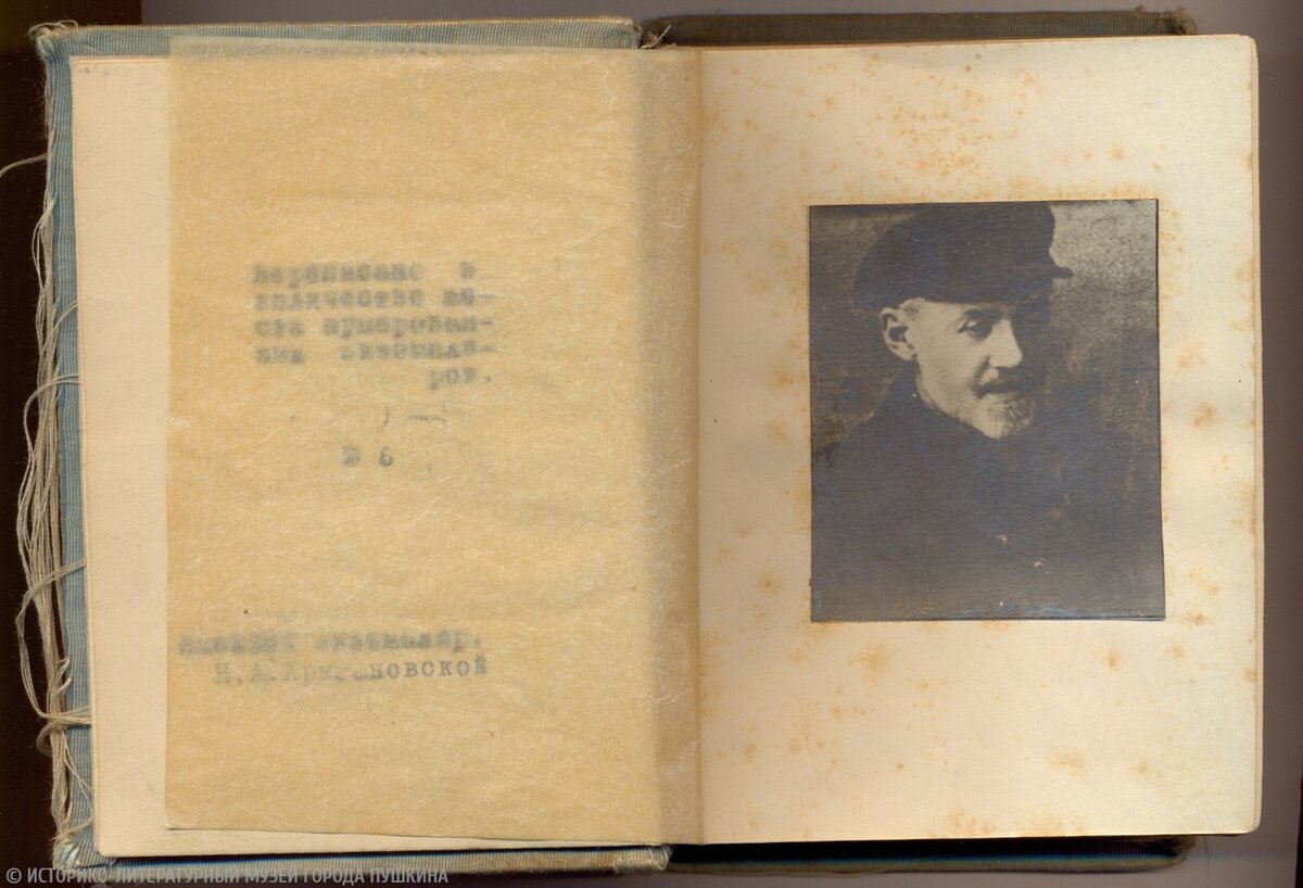 В одной из витрин экспозиции нашего музея, посвященной поэтам Серебряного века, посетитель может увидеть томик стихов «Старые стены» Валентина Кривича, сына поэта Иннокентия Анненского. Эта небольшая книга в муаровом переплете голубого цвета с текстом, набранным на печатной машинке. На обороте титула есть две надписи: "Переписано в количестве шести нумерованных экземпляров. № 6" и "Именной экземпляр. Н. А. Крыжановской". Сведения о необычной истории появления этого издания можно найти в книге Зинаиды Гимпелевич «Литературная тетрадь Валентина Кривича» (издательство «Серебряный век», 2011). Гимпелевич обращается к воспоминаниям «О детскосельском поэтическом кружке» Дмитрия Ивановича Зиневича, инженера-кораблестроителя, доктора технических наук. Кружок возник по инициативе Валентина Кривича и состоял из сослуживцев по институту водного транспорта. В него входила и кандидат технических наук Нина Алексеевна Крыжановская, владелица тома стихов Кривича, хранящегося в музее. Регул