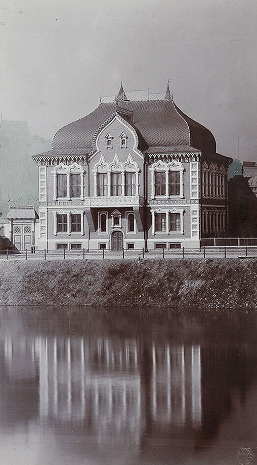 В 1898–1901 годах И.Е. Цветков построил для своей коллекции двухэтажный особняк на Пречистенской набережной (сейчас это резиденция посла Бразилии), неподалеку от храма Христа Спасителя, с видом на Кремль и Третьяковскую галерею. Внешний вид фасадов и внутреннее убранство были стилизованы под древнерусский терем по рисункам и указаниям художника В.М. Васнецова, друга Цветкова.